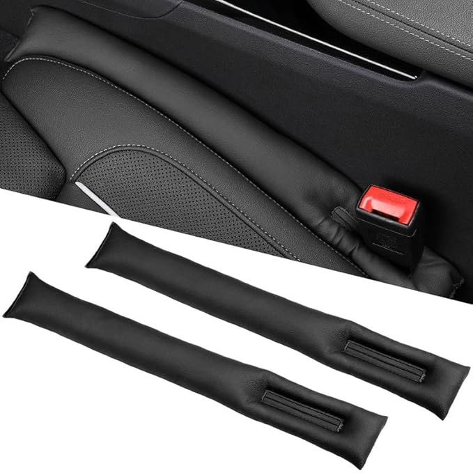 Econour 2PCS Leather Car Seat Gap Filler, Car Seat Gap Stopper Anti-Drop Space Slot Reserved Safety Belt Space, Premium Car Gap Filler Pad Car Accessories for Women and Men(Black)