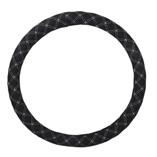 Econour Leather Universal Steering Wheel Cover for Car, Medium (14.5″ – 15.5″), Leather, Anti Slip Steering Cover – (Model – WHITE Check) Black Color