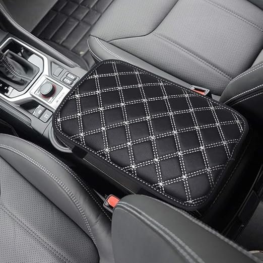 Abhinaya Car Center Console Armrest Pad Cover Cushion, Car Interior Soft Armrest Cover Compatible With Kia Sonet – 7D Black White Check